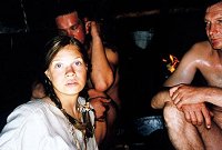 There's a disarming innocent charm here that belies the sophistication and worldliness of the three characters; these are lost and lonely people thrown together by a situation they have no control of, and each is trying to make the best of it somehow. The humour is constant--misunderstandings, innuendo, acting at cross purposes and even a heavy dose of irony woven into the screenplay by Rogozhkin, who directs in a straightforward 1940s-style that lets the setting and the characters to the talking. The scenery is stunning, distinctly capturing the isolation as well as the human interaction, which is shown almost at an sideways angle. (For example, we never see any sex, even though this is quite clearly the only thing on Anni's mind!) The performances are open and very honest, and the minimalist production values serve the story perfectly. There's a bit of a derailment in a surreal sequence near the end that's beautiful and evocative, yet takes us out of the story at hand. Otherwise it's a comical and surprisingly light and entertaining little fable that's well worth a look. [12 themes, some violence] 2.Sep.03 | |